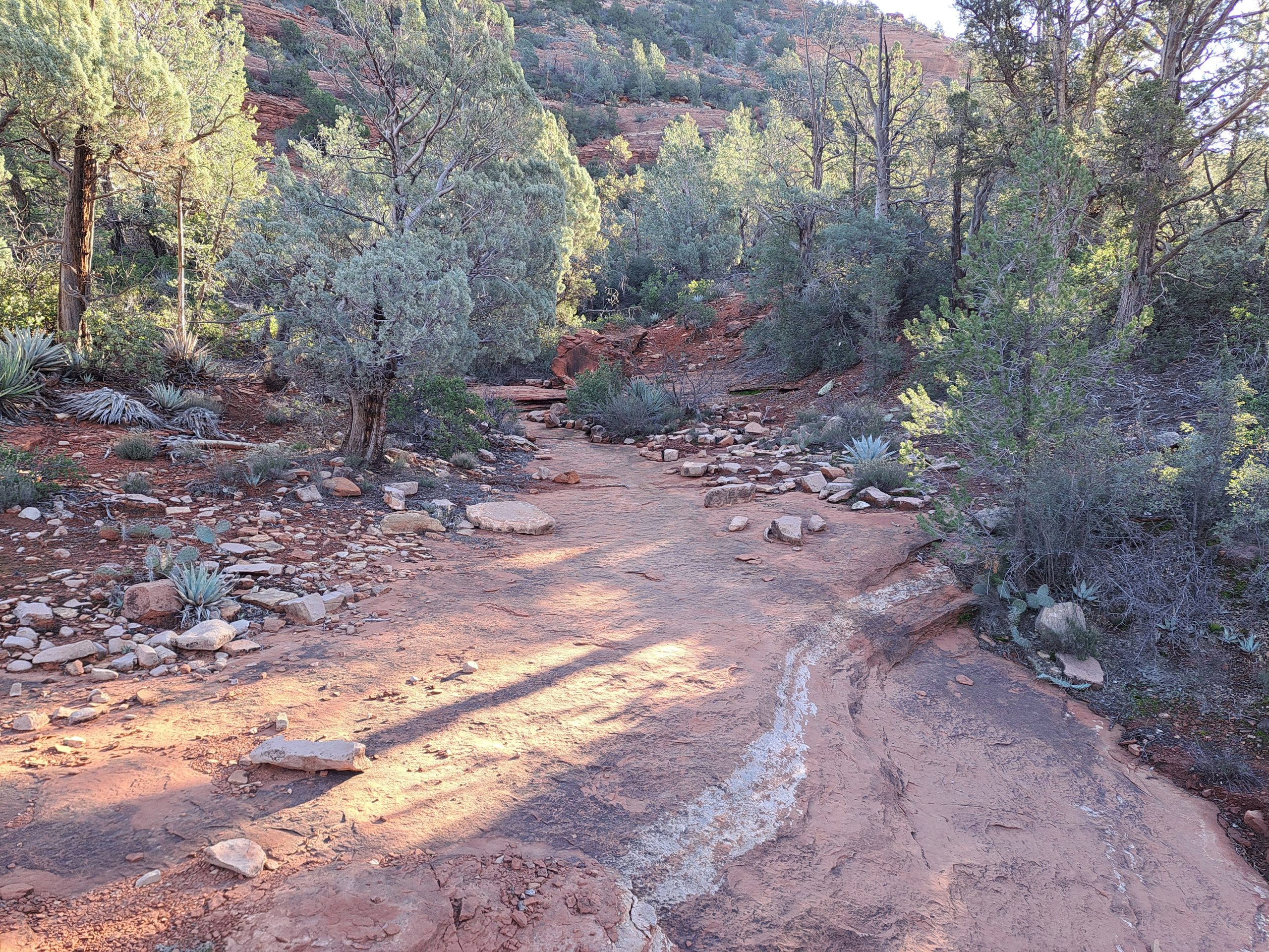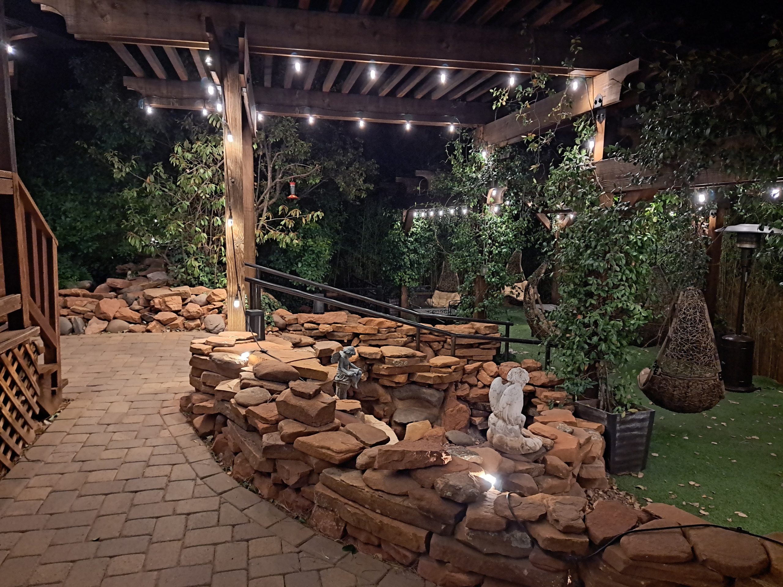 After lunch, I traveled north to Sedona. I stopped several times to admire the vast and rugged landscape. The Lantern Light Inn, chosen for its cheap room, is a unique and charming experience. The rooms open to the garden, filled with hammocks, fire pits, and paths you could nearly get lost in.