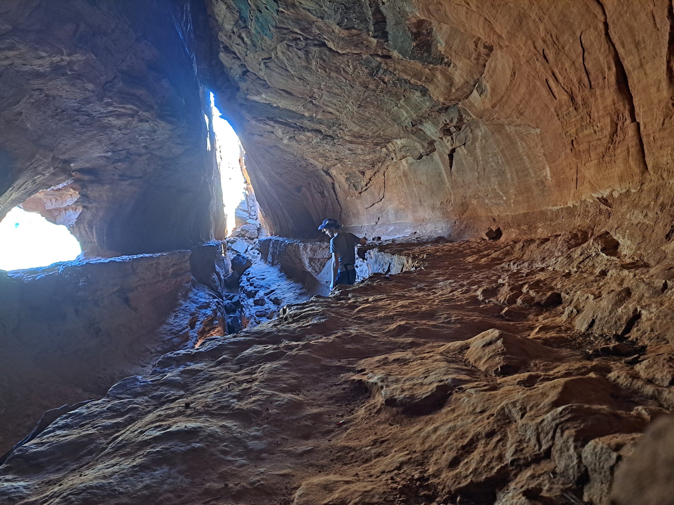 It felt freeing to finally walk into the wilderness, even curated and traveled as it was. I was well equipped, moving at my own pace, and had a vague idea of my objective: the Soldier’s Pass Cave. I knew it was off the path, and I kept exploring dry stream beds thinking they might lead me there. Eventually I lost the trail entirely and forged my own path along the bottom of the mountain. The foliage was thick enough to block travel in most directions, but sparse enough that any opening looked like it could be a path.