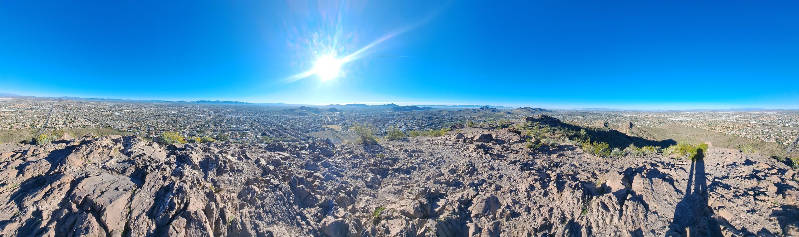 I may regret it later, but as long as later happens in Wisconsin and not Arizona it’s fine. Distance is hard to guess here. The hill looked like one or two hundred feet, but later research revealed it was five hundred feet tall. I finally reached the top, and it was rewarding in a way no other hike has been this trip. In Sedona, every trail ends in a sheer rock face which cannot be scaled without gear. This was the first challenge to be conquered completely. The city of Phoenix lay in every direction.