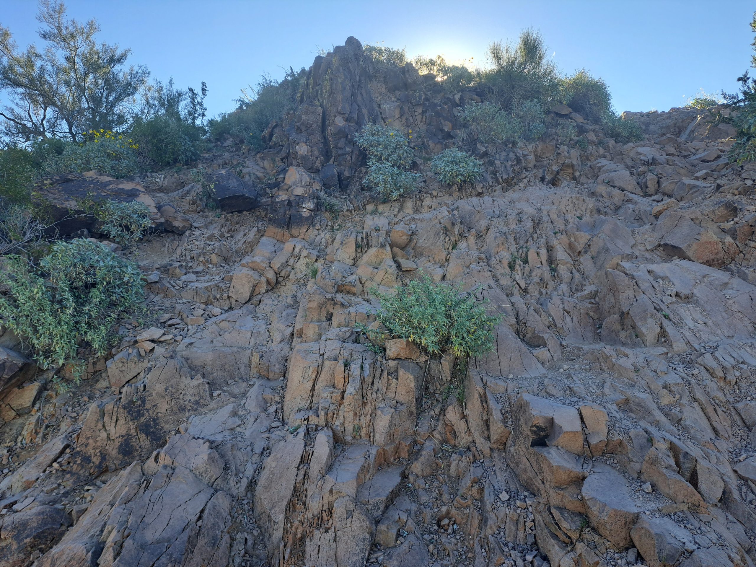 On the way down, I noticed the rock layers were vertical instead of horizontal. The entire mountain had been formed by a section of crust getting upended on its side and held there while the ground around it solidified from whatever cataclysm broke it apart. The evidence of such sheer force on the Earth’s surface was sobering. I had seen these layered formations before in caves and cliff walls. Walking over them on the ground was almost surreal. I would never mock someone who believes in vortexes and spiritual energy, at least not to their face, but the Earth’s true energy is unfathomable and uncaring. Pray you never experience it close up.